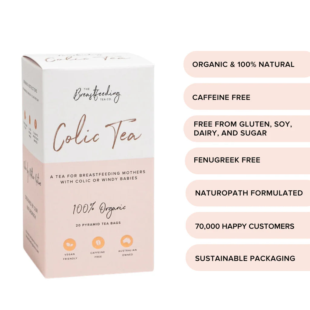 Colic can be heart breaking with sleepless nights, a crying baby in pain and a feeling of helplessness. Our Colic Tea has been designed by our naturopath for breastfed babies with gas, wind and discomfort. Made by mother nature, our tea is all-natural, organic, vegan and free from any artificial ingredients.. Need support with your milk supply? Then our Lactation Products are the perfect addition to your routine which can also be combined with our colic products.