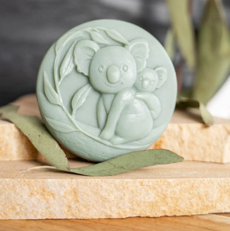Infused with the crisp, invigorating scent of mint and eucalyptus, it offers a truly uplifting aroma inspired by the Australian bush. Australian Kakadu plum extract and activated charcoal help to gently exfoliate while shea butter ensures a deeply soothing, moisturising bar. Packaged in a charming, eco-friendly box, it makes a thoughtful gift or a sweet treat for yourself. Whether you're a nature lover or looking for the perfect Australian-made souvenir, this koala soap is sure to bring a smile!