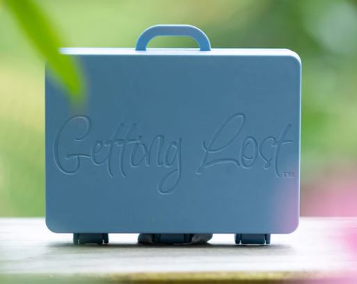 Each suitcase holds one Getting Lost Game in a box or up to 45 loose cards.