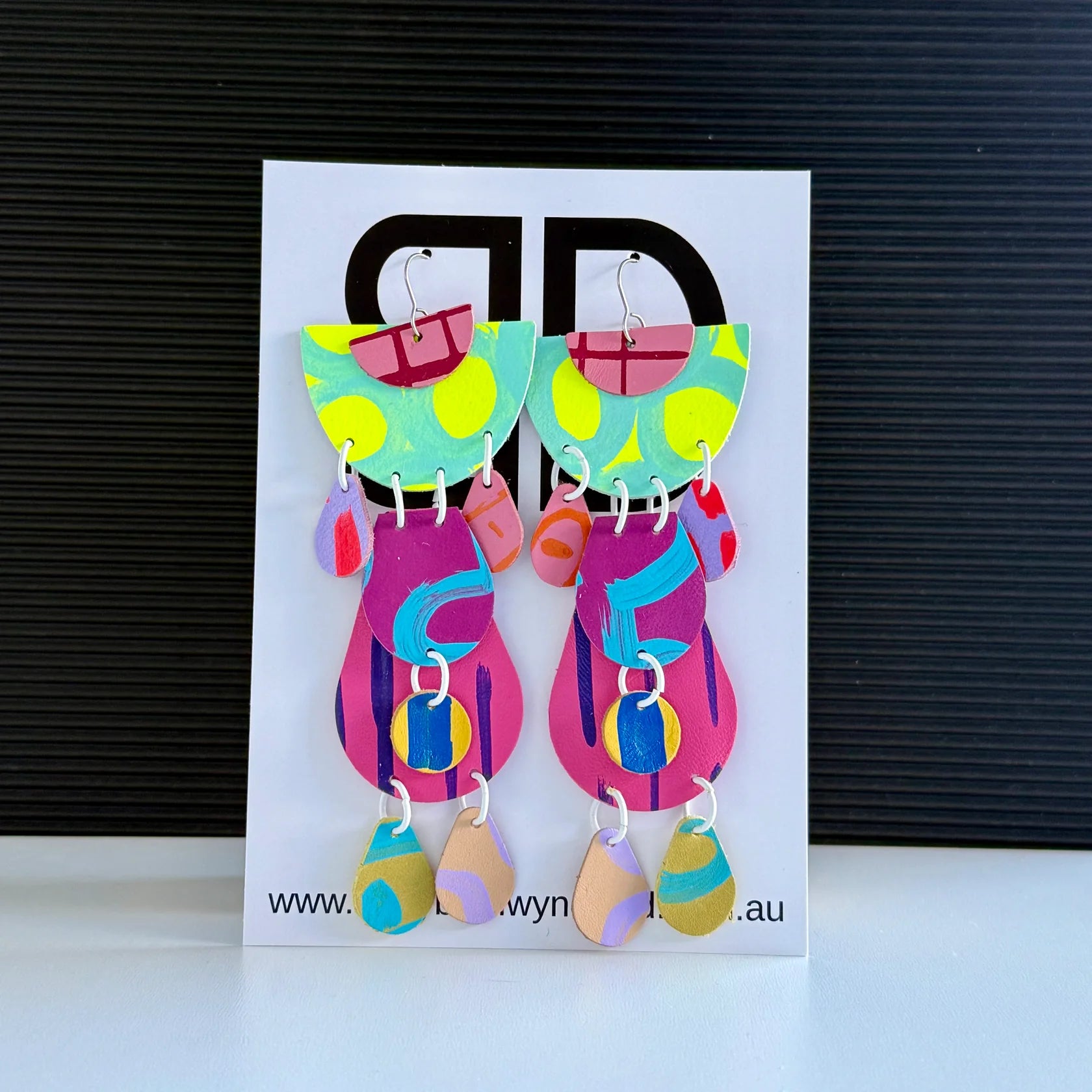 Half Moon Mega Statements- Handmade Painted Leather Earrings - Lightweight Statement Jewellery - Aboriginal Design | Artisan Crafted