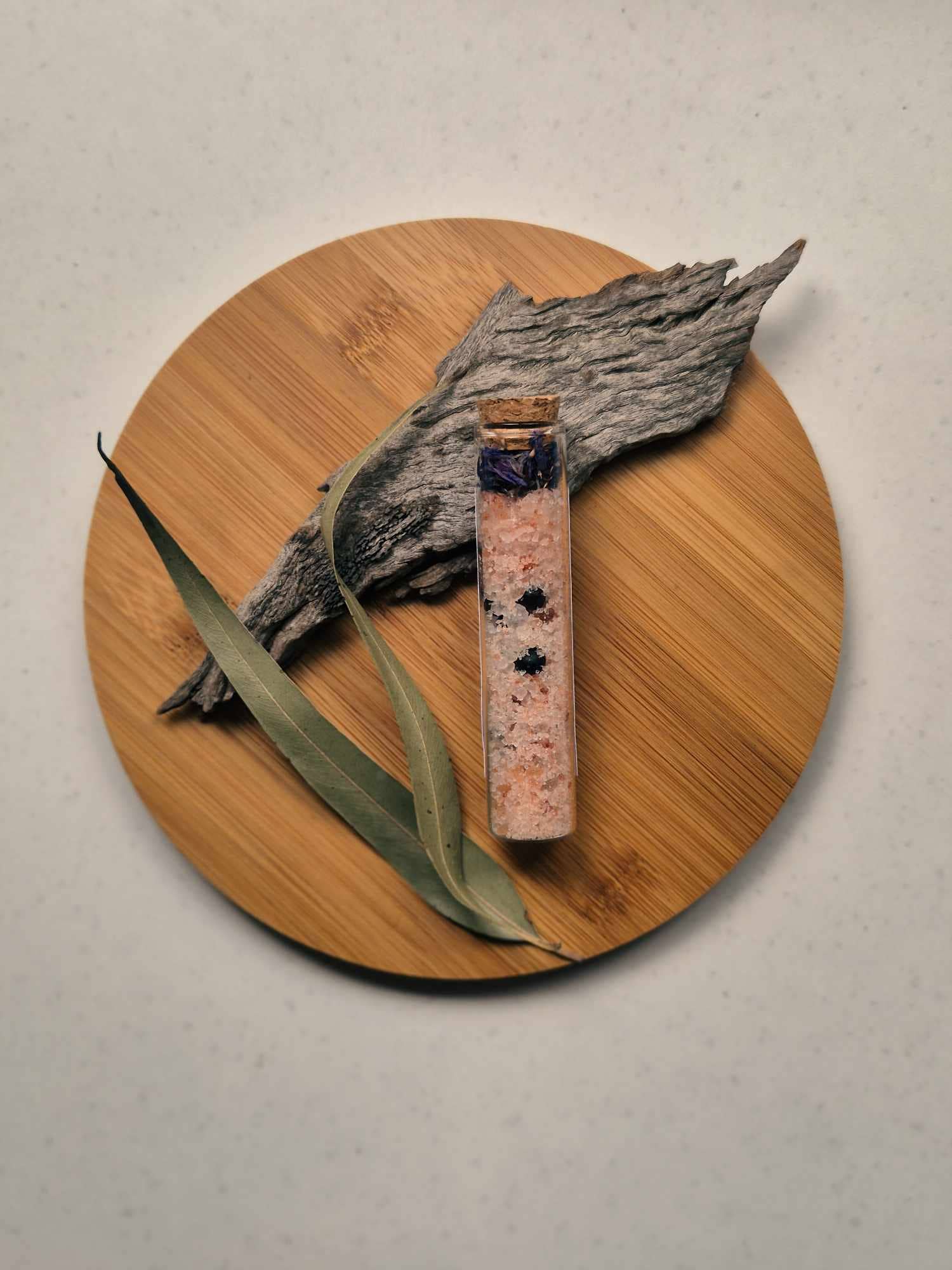 Moon Bathing - offers a moment to pause & connect with your inner self. A cleansing of negative energy & emotional release. Containing dead sea salt, himalayan salt, juniper berries, blue cornflowers, essential oils of native rosalina & lavender (both calming).
