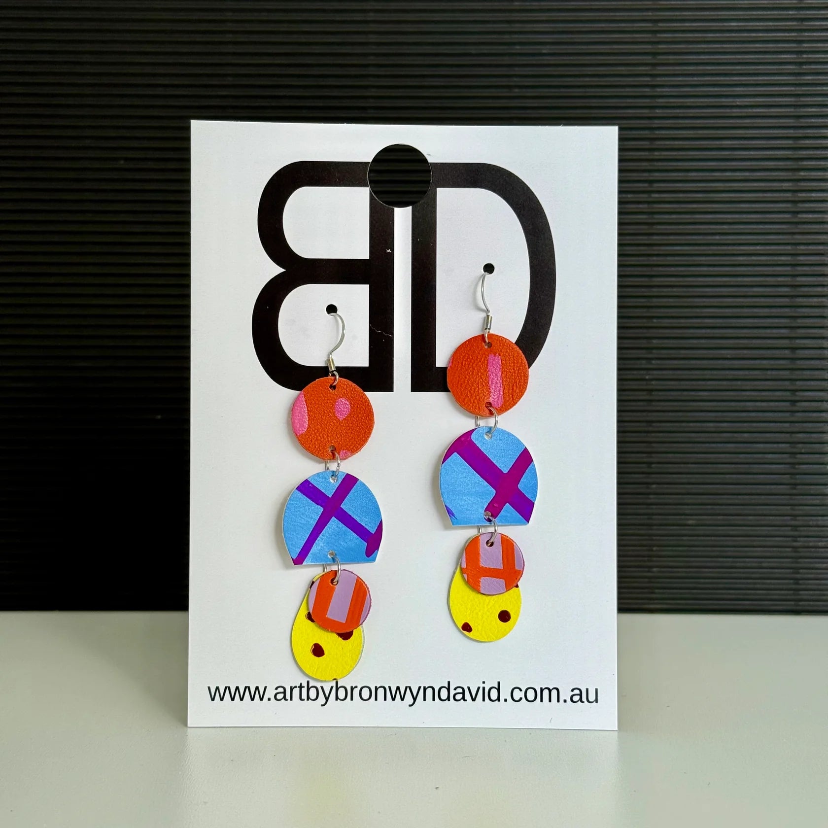 Triple Drops - Handmade Painted Leather Earrings - Lightweight Statement Jewellery | Artisan Crafted